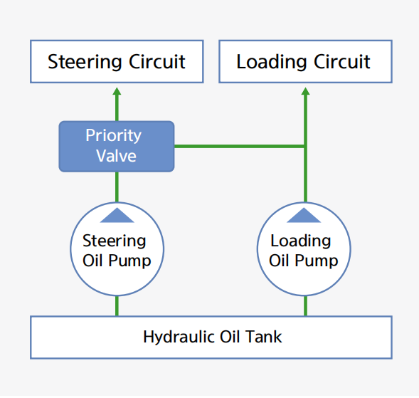 بسبب تقنية التقاء المضخة المزدوجة ، يعمل النظام الهيدروليكي بكفاءة ، ويستخدم المضخة بالكامل.